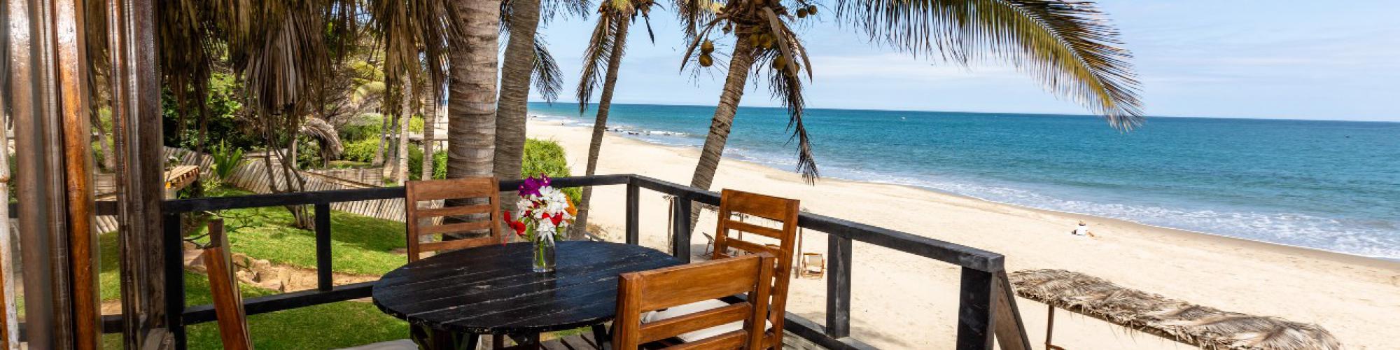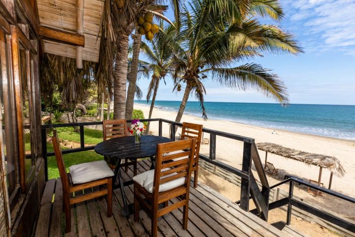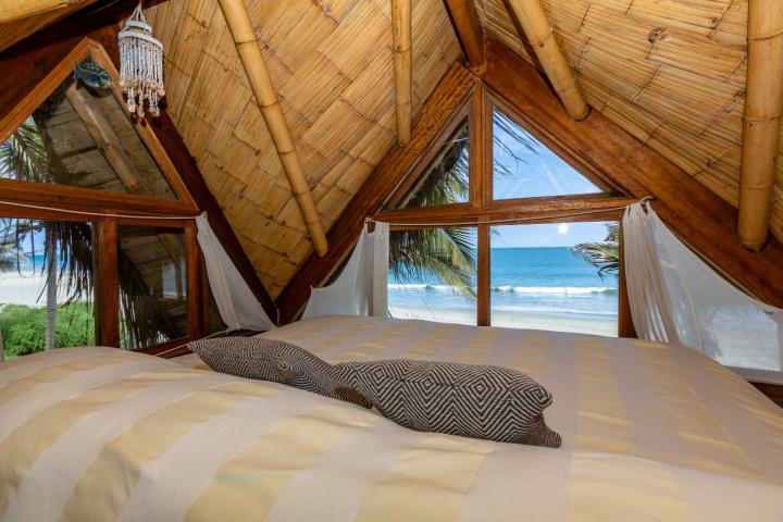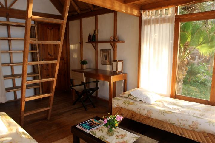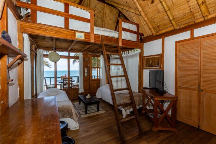 Esta cabaña es más pequeña se encuentra al nivel de la playa volada sobre pilotes en la arena es ideal para 2 personas (max 4). Consta de dos niveles: